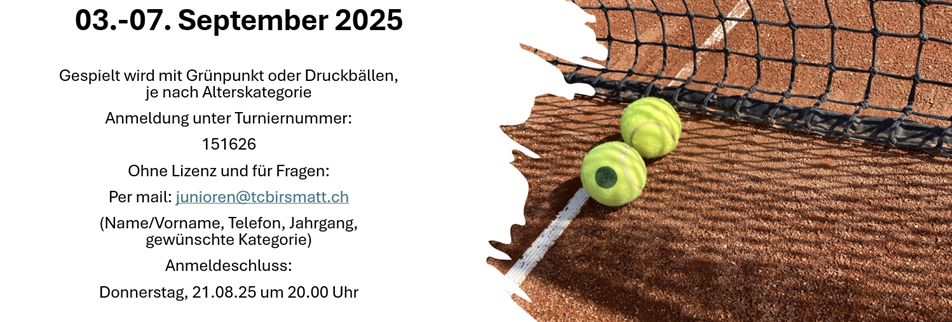 Anmeldeschluss Donnerstag 21. August 2025 um 20.00 Uhr